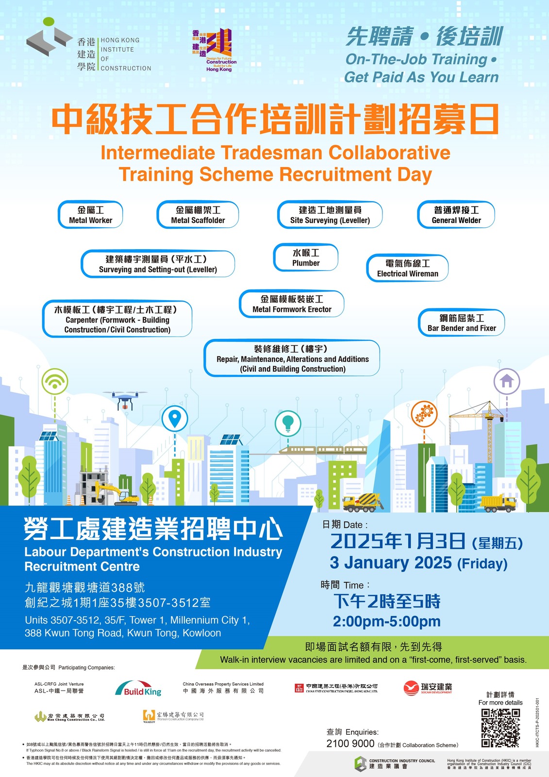 瑞安建築有限公司 | 普通焊接工、建造工地測量員 |