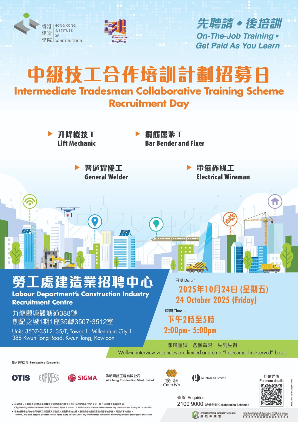 地點:觀塘勞工處建造業招聘中心(九龍觀塘觀塘道388號創紀之城1期1座35樓3507-3512室 )