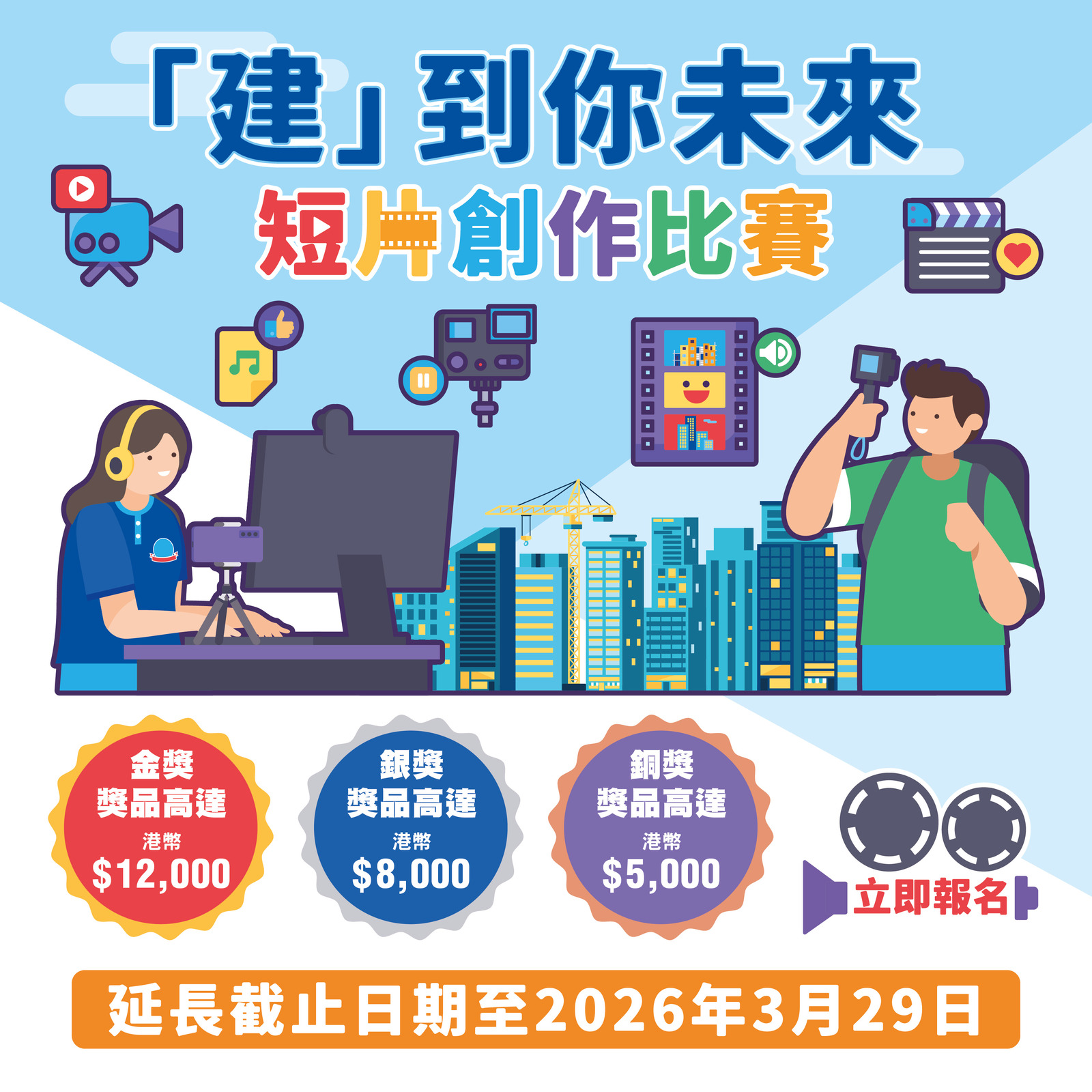 旨在透過富有創意的短片創作,提升青年對建造業的關注度與認識,讓他們以嶄新角度探索行業的多元面貌與社會價值。此外,透過藝術創造的力量,青年可表達對建造業的想像、感受與願景,並反思行業在城市發展中的角色與意義。