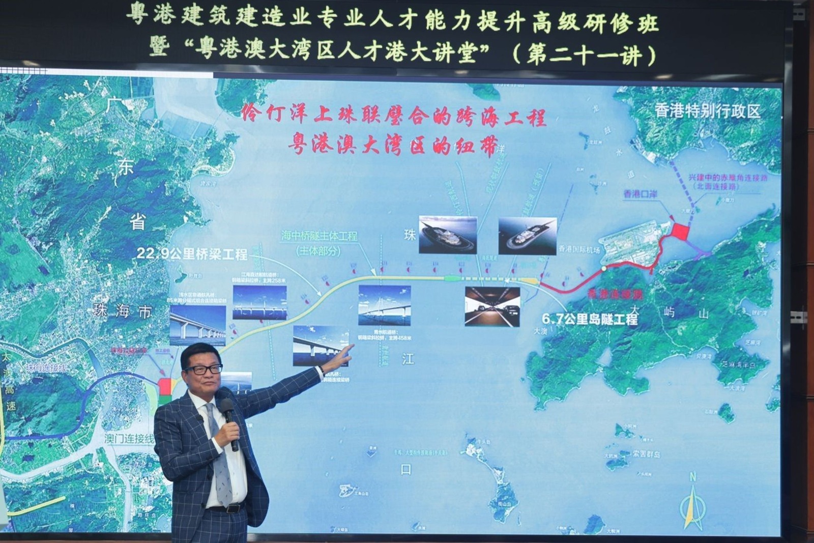 我有幸与两位德高望重的国家级院士同台授课——华南理工大学建筑设计研究院首席总建筑师、建筑学院荣誉院长何镜堂院士,以及香港大学城市规划及地理资讯系统讲座教授叶嘉安教授。以「香港建造业发展及粤港合作机遇」为主题,我向与会者介绍特区政府以基建带动经济的施政方针,强调香港建造业蕴藏庞大机遇,包括规划北部都会区成为创新科技与城市典范,扩展交通基建网络,兴建约19万个公营房屋,以及推行为期10年的医院发展计划等,这些都是建造业为香港注入动力的建树。